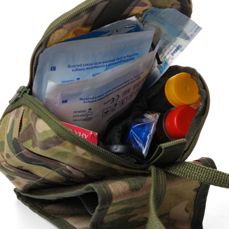 Аптечка имеет Мультикам-камуфляжный дизайн, который позволяет легко спрятать ее среди окружающей среды и быть незаметной для посторонних глаз. Ее компактные размеры позволяют легко поместиться в кармане, рюкзаке или тактическом снаряжении.