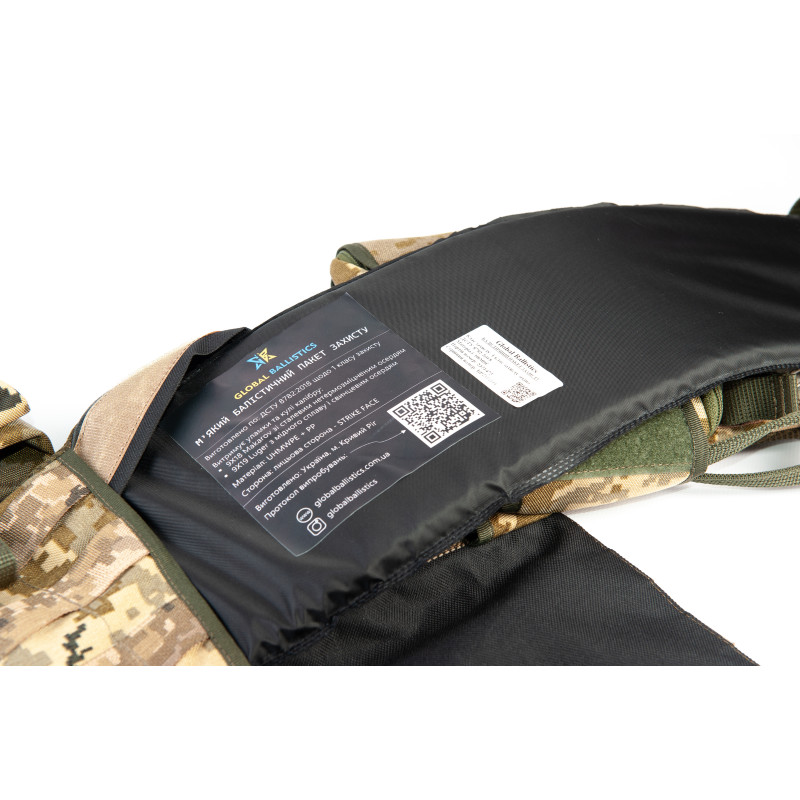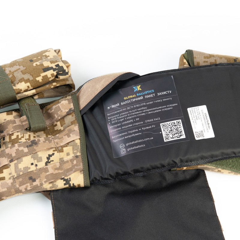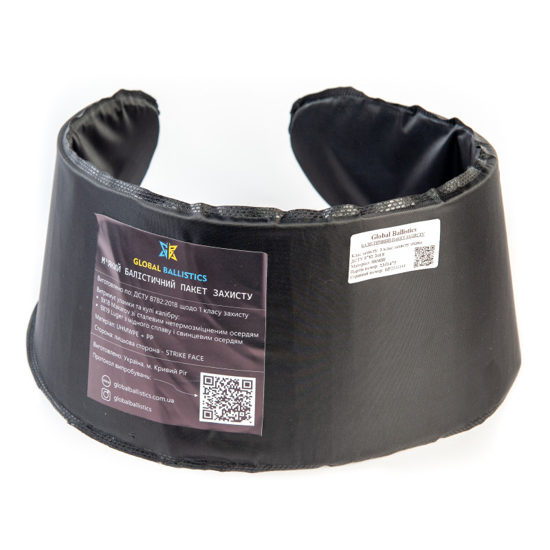 Баллистический пакет 1-го класса имеет оптимальную конструкцию и высокую прочность, обеспечивая непревзойденную защиту от пуль и осколков. Его основным элементом является бронепластина, выполненная из современных композитных материалов, которая обладает высокой степенью взаимодействия с кинетическими угрозами.
