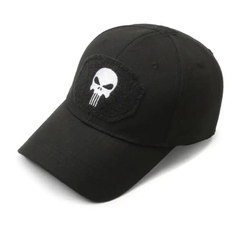 Кепка тактическая «Punisher» Rip-Stop Black (чёрная) с сеткой - идеальный выбор для любителей экстримальных видов спорта, а также для повседневного использования в городе. Изготовлена из высококачественного материала Rip-Stop, который обеспечивает прочность и долговечность кепки. Чёрный цвет придает ей строгий и стильный вид. Сетчатая вставка обеспечивает отличную вентиляцию и комфорт в жаркую погоду. Дизайн кепки вдохновлен символикой комиксов о Палаче, что делает ее стильным аксессуаром для любителей такого жанра. На козырьке кепки вышит логотип «Punisher», придающий ей уникальность и неповторимость.
