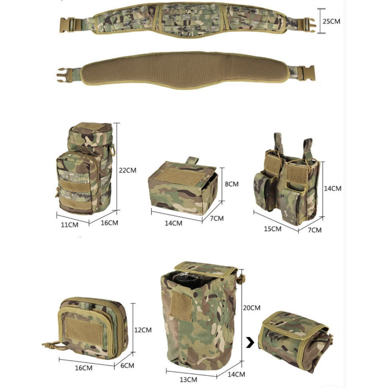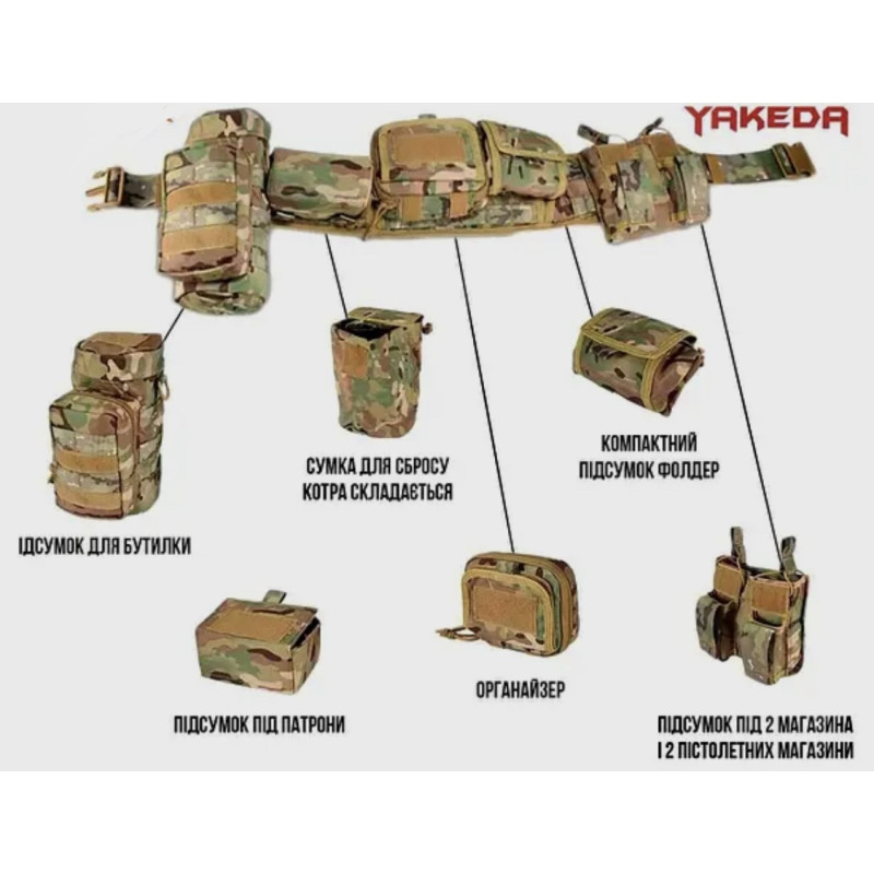 Модульный тактический пояс РПС "YAKEDA" с подсумками. Мультикам.