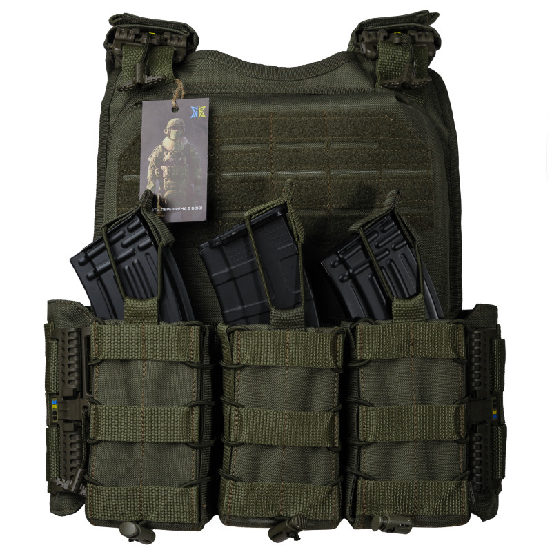 Оснащенный тремя подсумками для автоматических винтовок типа АК, этот плитоносец предоставляет удобную и доступную хранение боеприпасов. Каждая подсумка имеет прочные липучки и регулируемые ремешки, что позволяет идеально подогнать их под нужные размеры магазинов.