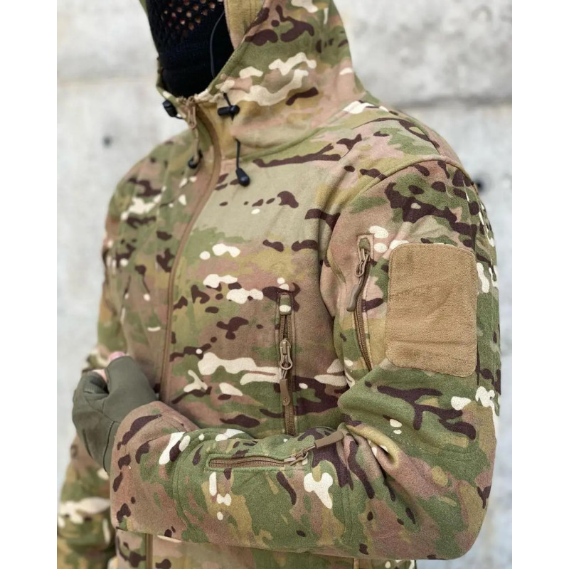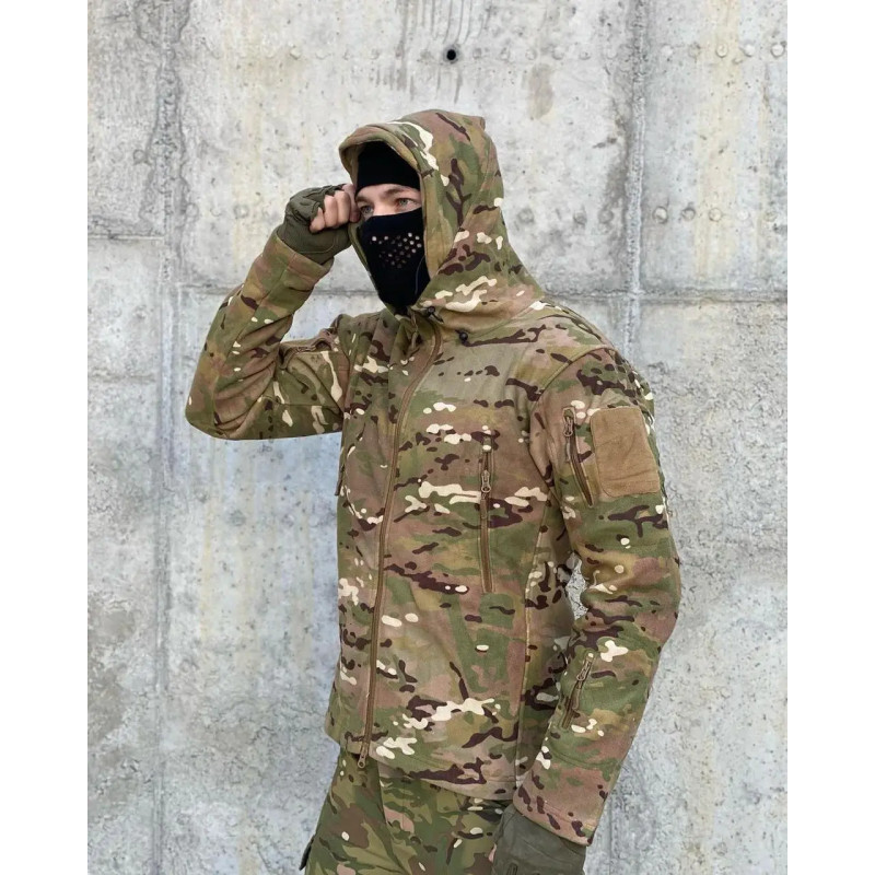 Тактична флісова кофта з капюшоном у відтінках мультикам - ідеальна верхня одяг для активного відпочинку та виконання тактичних завдань. Вона забезпечує комфорт, зручність і захист під час будь-яких погодних умов.
